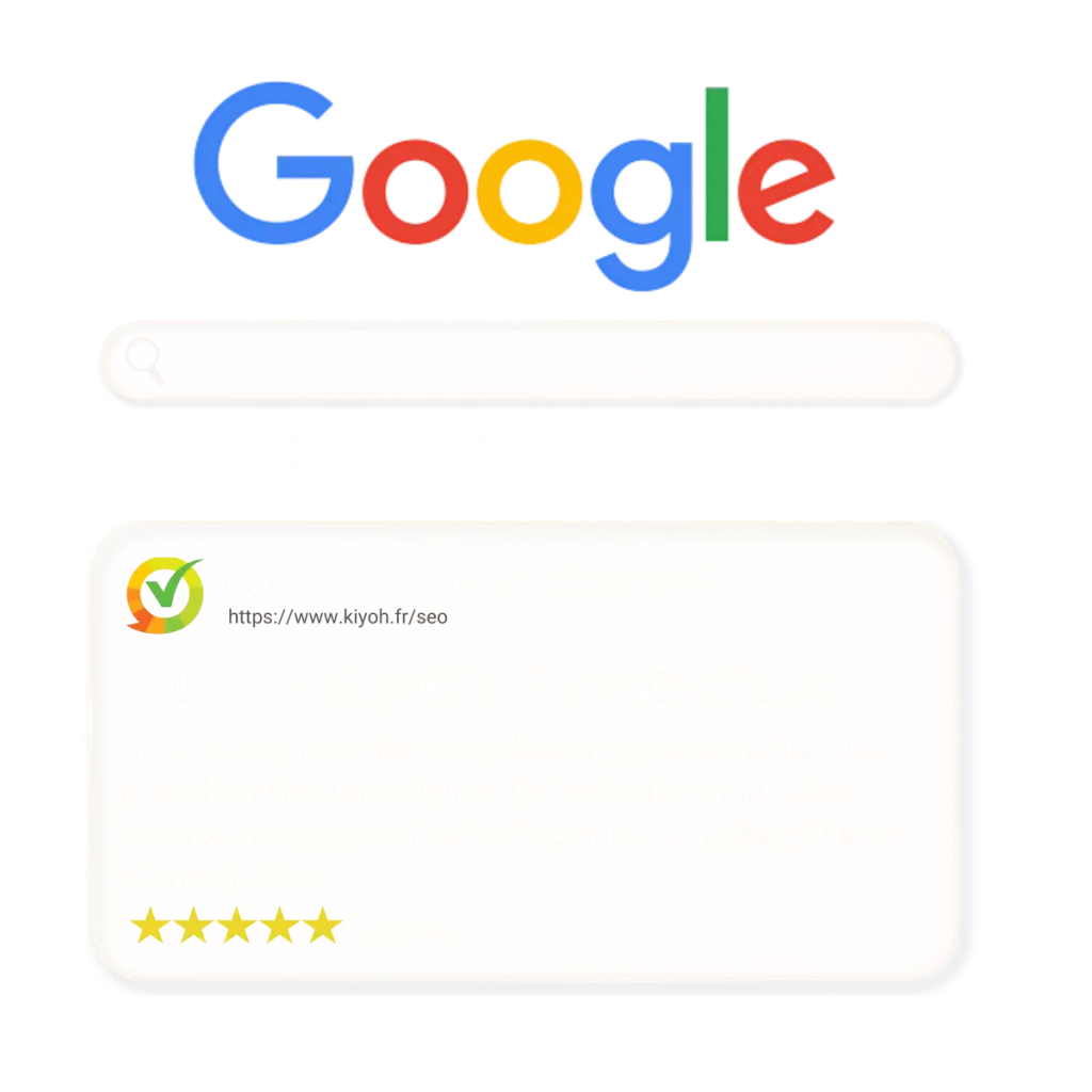 Les avis clients sont aujourd’hui essentiels au succès en ligne. Avec Kiyoh, vous gagnez la confiance des prospects et des bénéfices concrets : 92 % des consommateurs lisent des avis avant achat, les campagnes Google Ads peuvent atteindre jusqu’à +35 % de conversion, et votre entreprise gagne en visibilité dans Google et dans les moteurs de recherche pilotés par l’IA. Avec Kiyoh, vos avis travaillent pour votre croissance.
